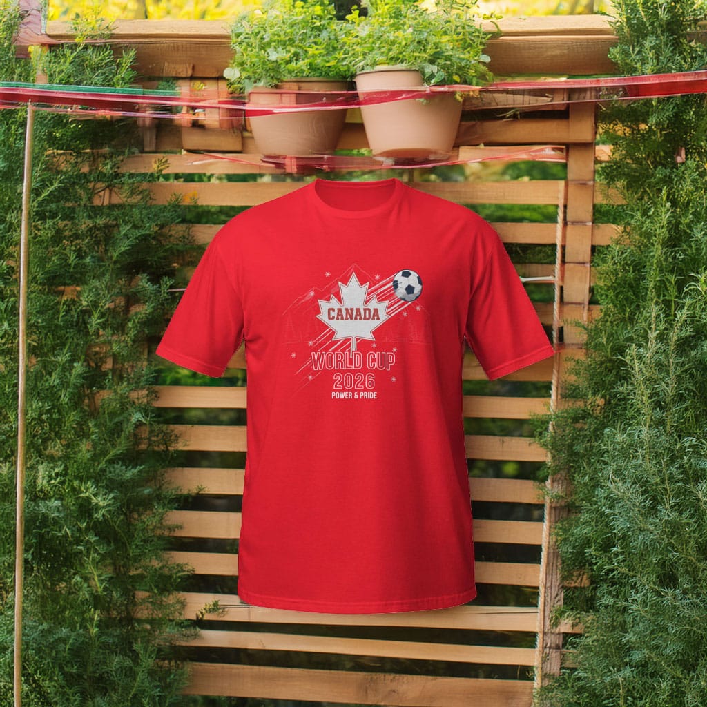 Simple, comfortable, and timeless, this t-shirt is a meaningful keepsake for Canadian soccer fans celebrating World Cup 2026 on home soil.
