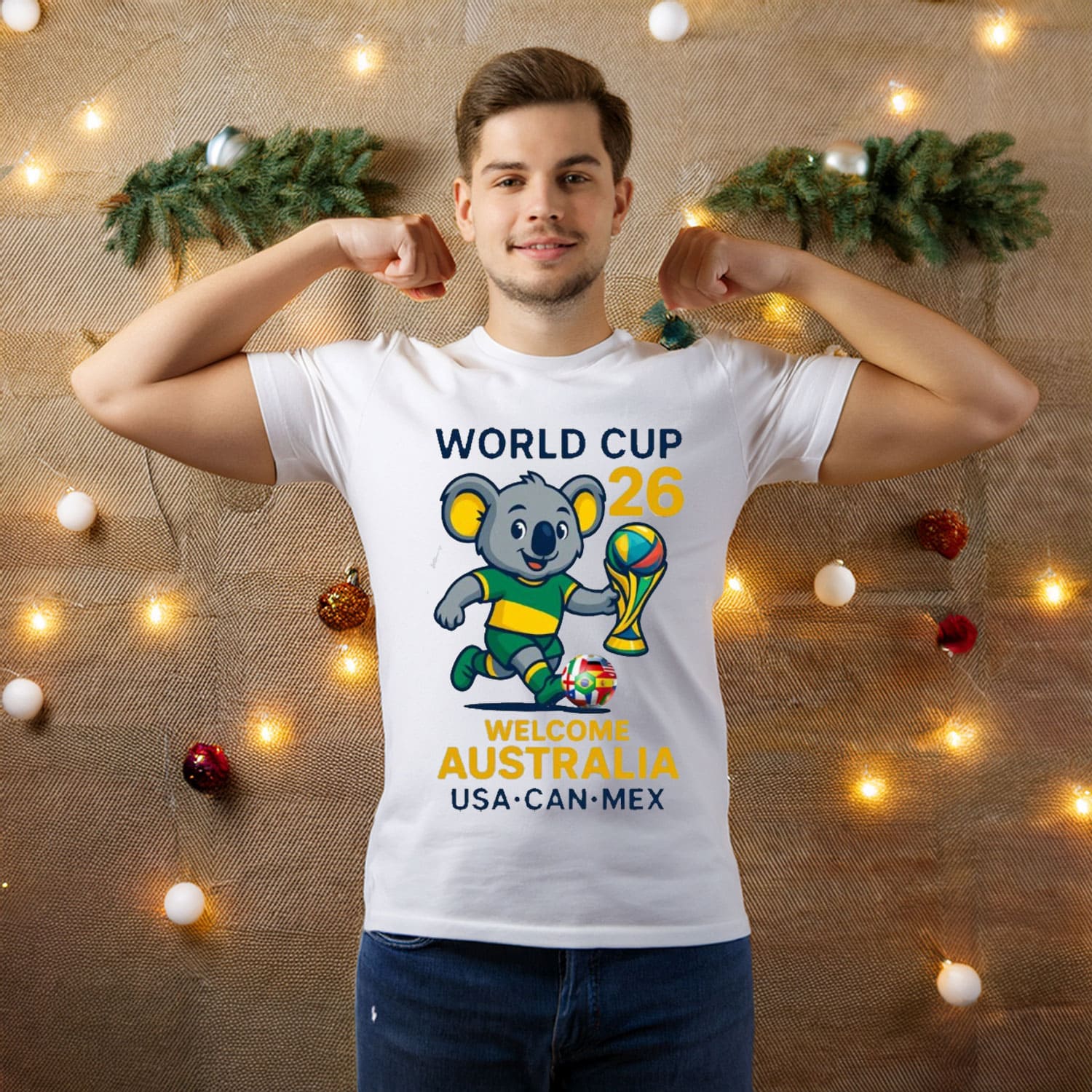 The Funny Koala Soccer World Cup 26 Tee is a playful, lighthearted fan shirt designed for supporters who love cute animal graphics with a soccer twist. Featuring an adorable koala character and fun World Cup energy, this tee adds humor, charm, and personality to your 2026 match-day outfit.