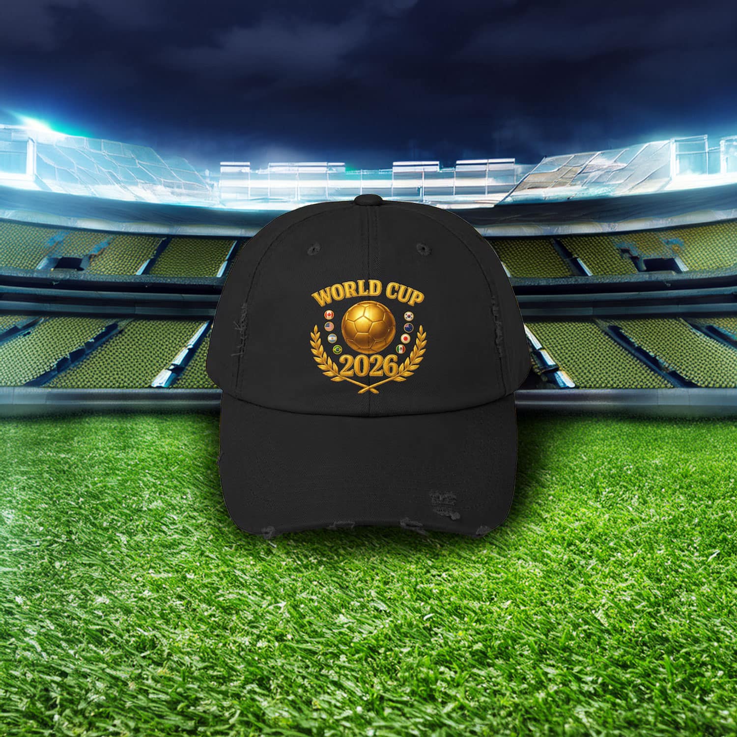 Show your passion for the game with the Gold Trophy Design – World Cup 2026 Hat, a sleek, championship-inspired accessory built for fans who want their match-day look to shine.