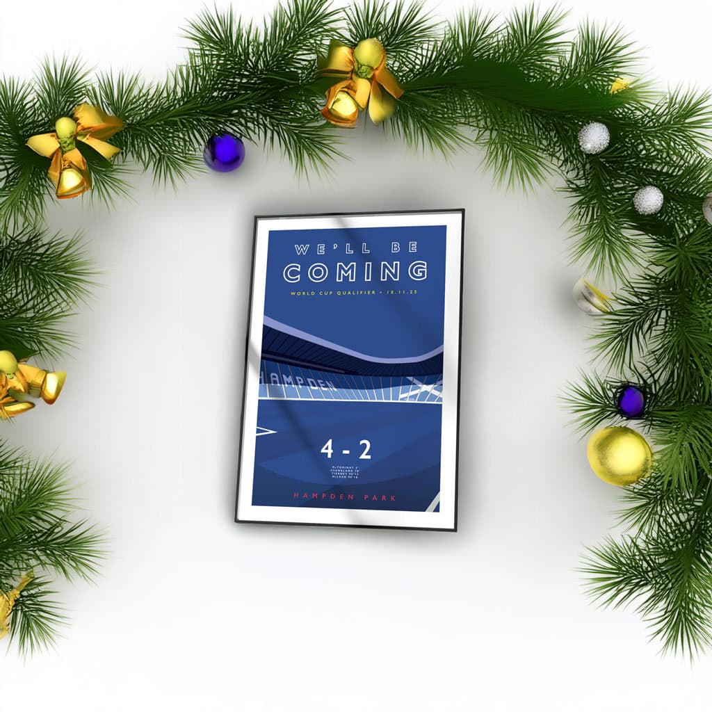 Bring the roar of Hampden home with the Hampden Park We’ll Be Coming Print Poster — a bold tribute to Scotland, its fans, and its unforgettable football spirit.