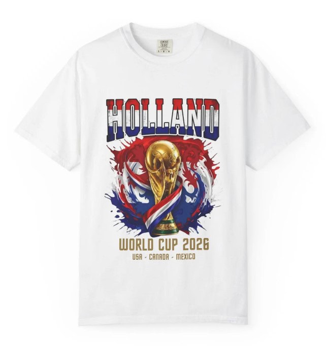 The Holland World Cup 2026 T Shirt Comfort Colors, Soccer Fan Tee is designed for passionate supporters of Dutch football who want to proudly represent Holland during the World Cup 2026. Inspired by the rich soccer history and unmistakable orange pride, this t-shirt captures the energy, unity, and excitement of international competition. It’s a must-have for fans who live and breathe the beautiful game.