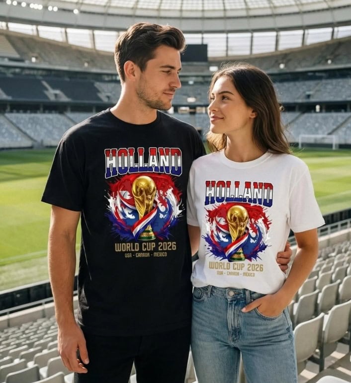 This Holland soccer fan tee features a bold yet timeless design that reflects national pride and World Cup spirit. The graphic is created to stand out while remaining easy to wear, making it perfect for match days, fan events, or casual outings. Whether you’re cheering at home, at a watch party, or on the streets, this shirt clearly shows your support for Dutch soccer.