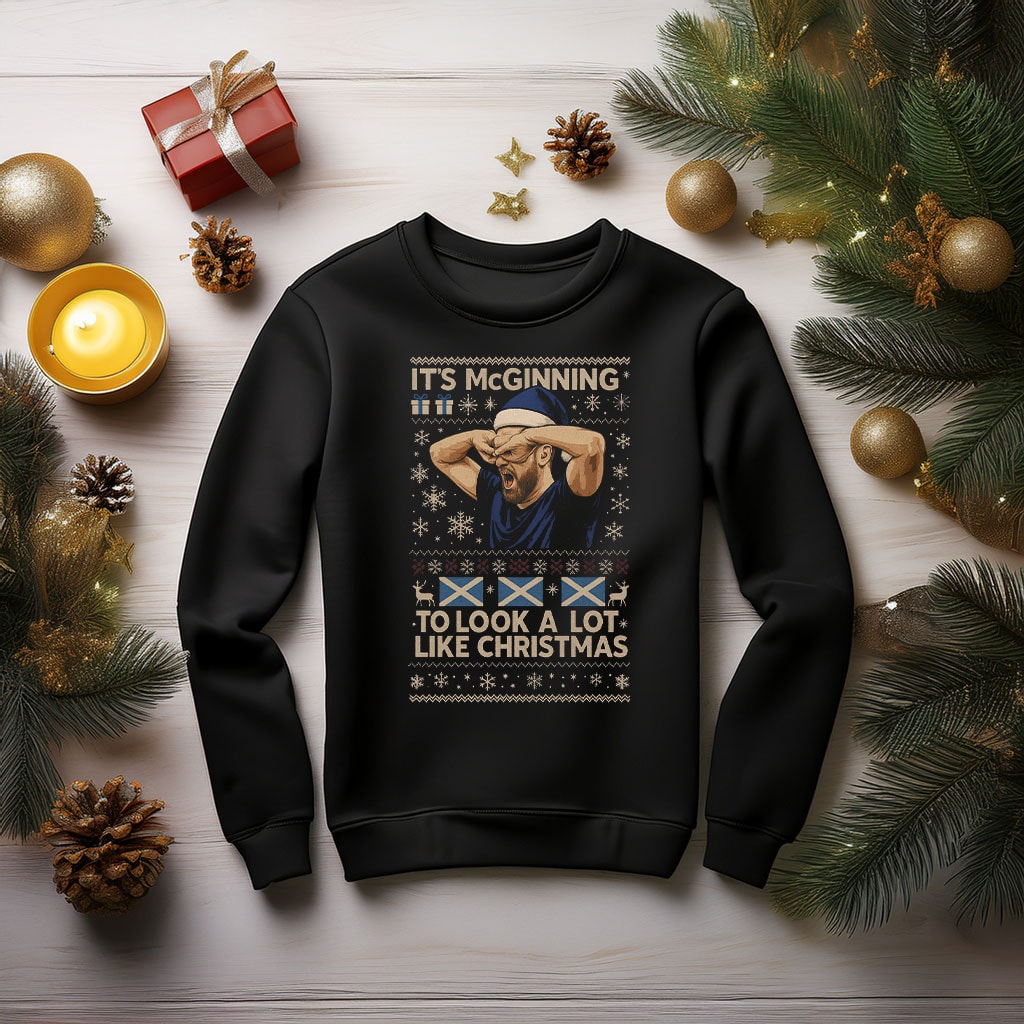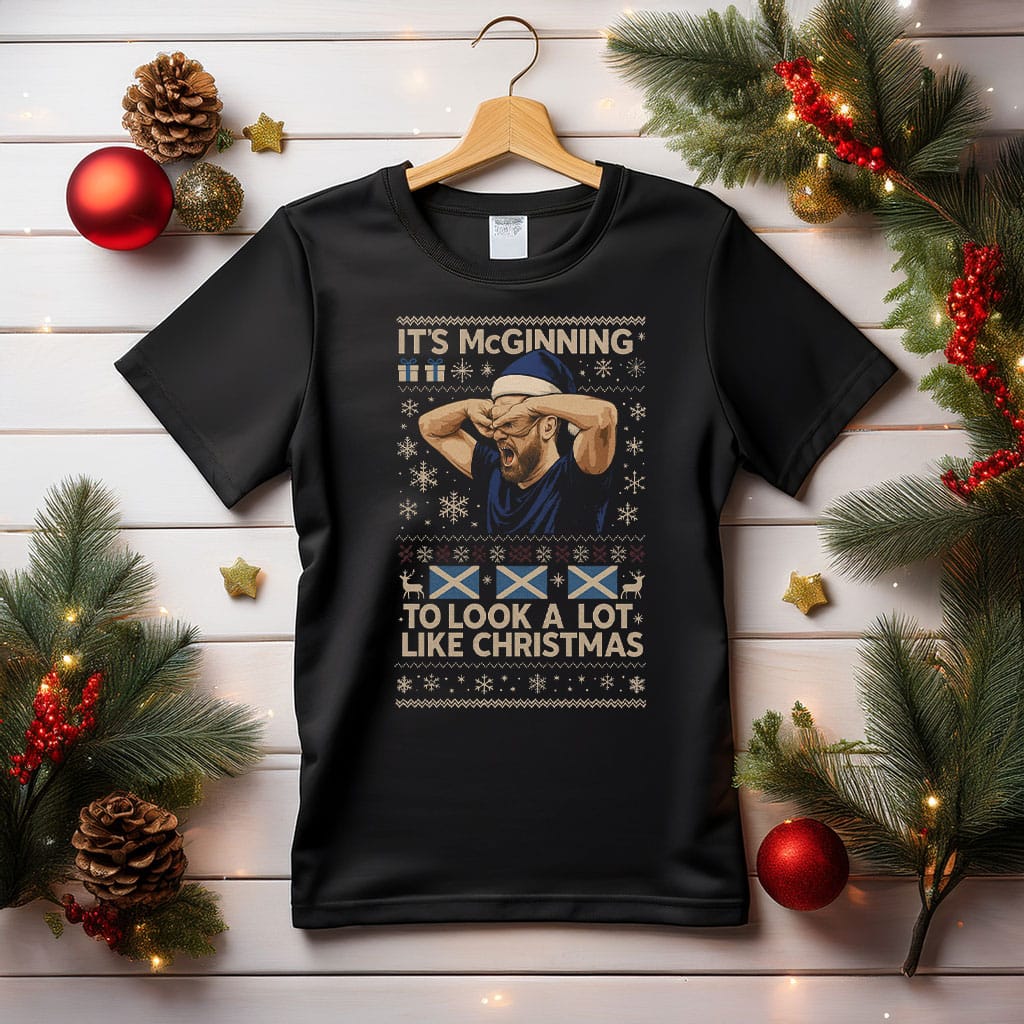 Bring humor, football energy, and festive cheer together with this It’s McGinning To Look A Lot Like Christmas Funny Shirt — the perfect holiday tee for fans of John McGinn, Scotland’s national team, and anyone who loves a clever Christmas pun. With its playful design and light-hearted theme, this shirt guarantees smiles at parties, match gatherings, and every winter celebration.