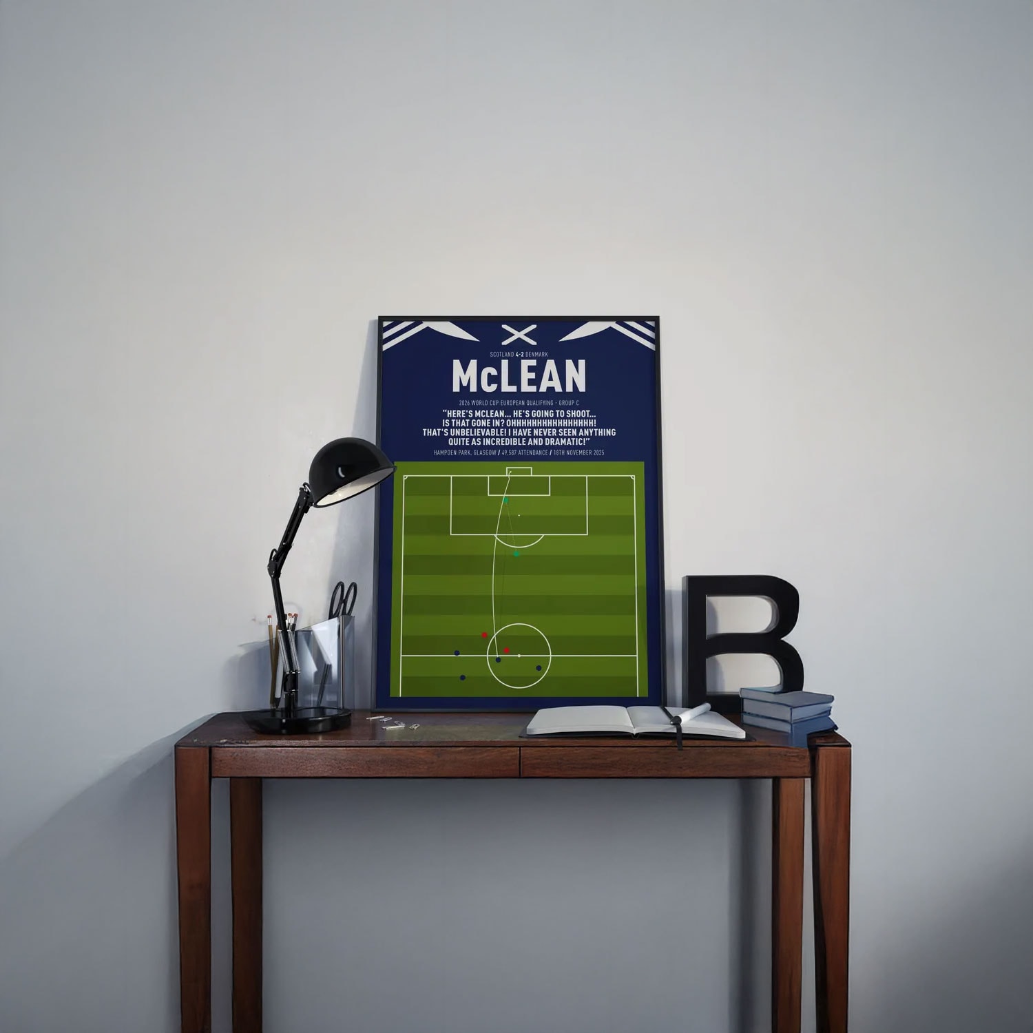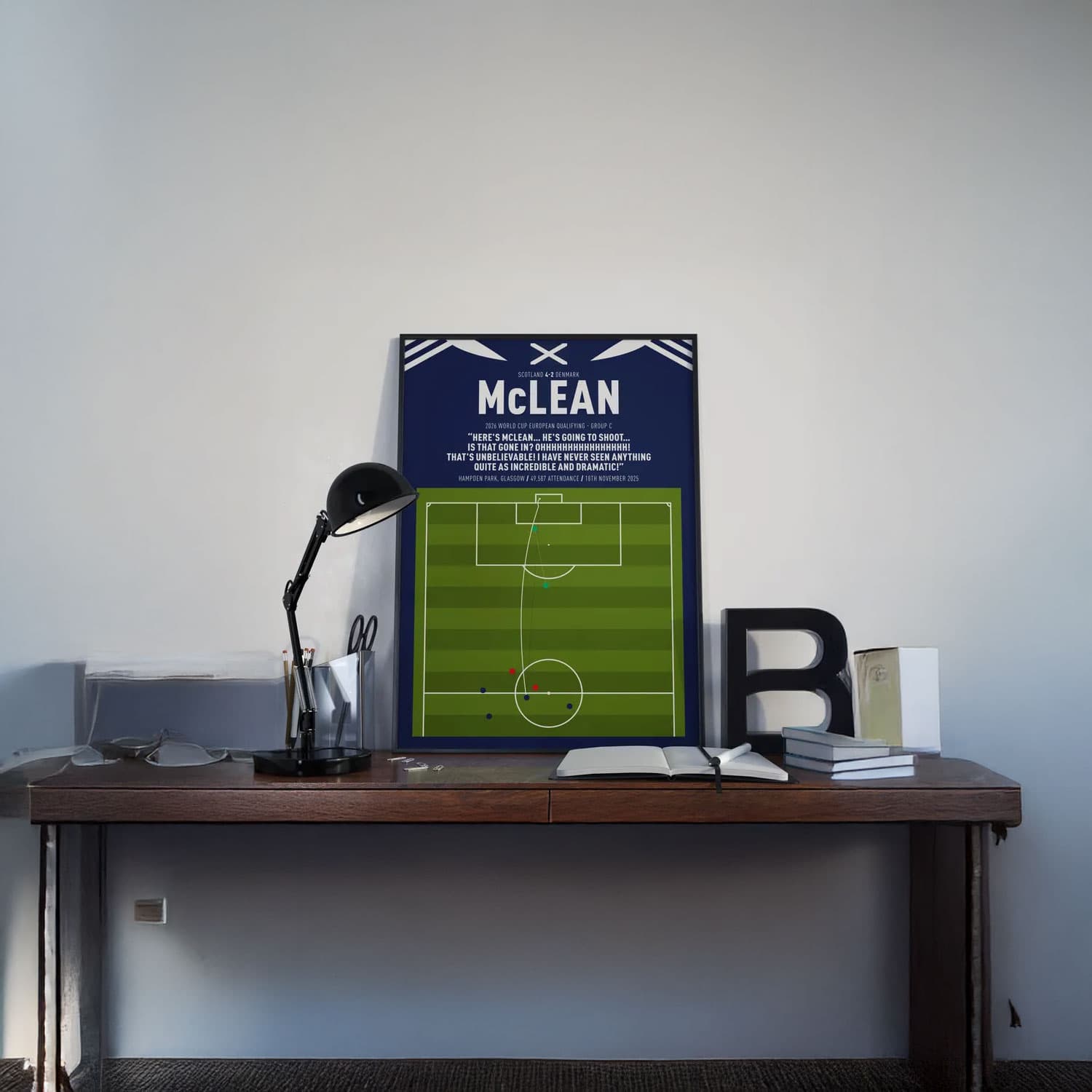 The Kenny McLean Goal – SCOTLAND vs Denmark – 2026 World Cup Qualifying Poster isn’t just décor — it’s a tribute to passion, national pride, and the unforgettable goal that helped define Scotland’s road to 2026. Hang it proudly and let the roar of the Tartan Army live on in your space.