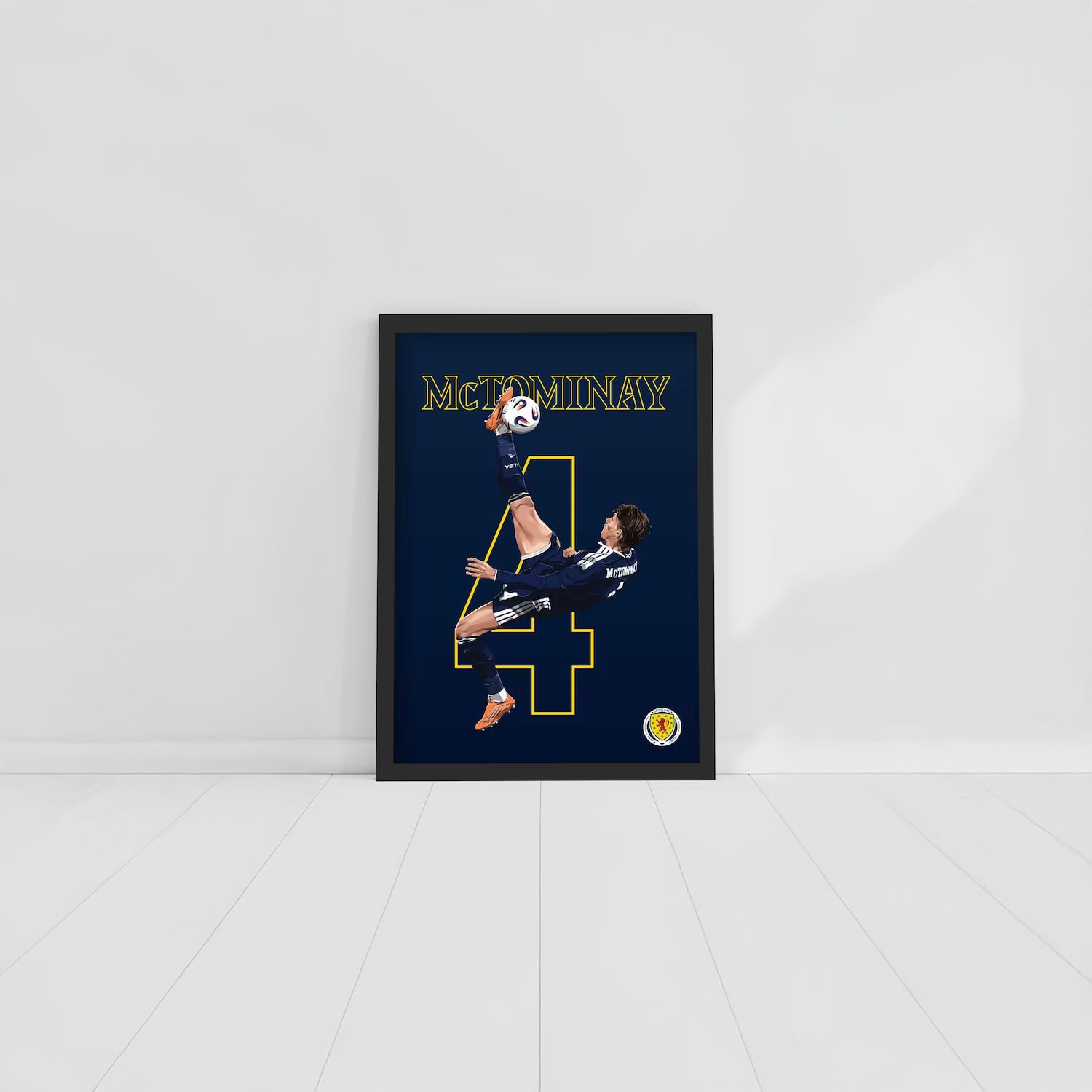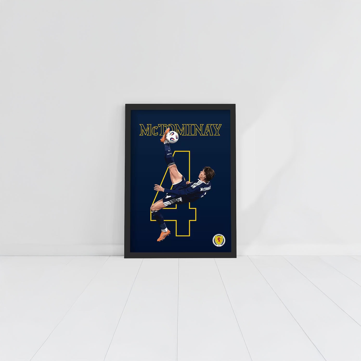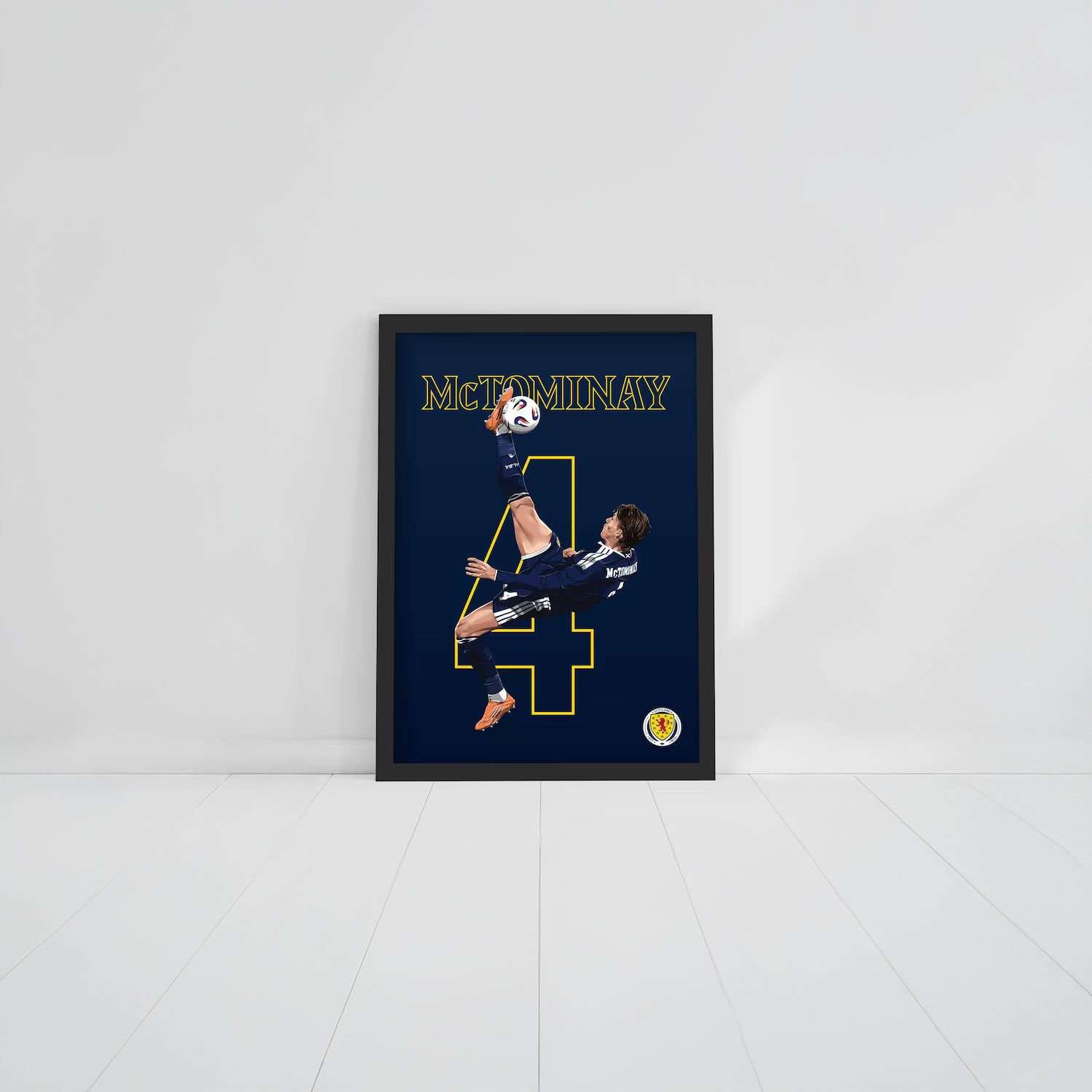 Designed in bold Scottish FA style, this poster features crisp detailing, motion-focused artwork, and national team colors that highlight the elegance and explosiveness of McTominay’s technique. It’s a celebration of the skill, timing, and confidence required for an unforgettable overhead finish.