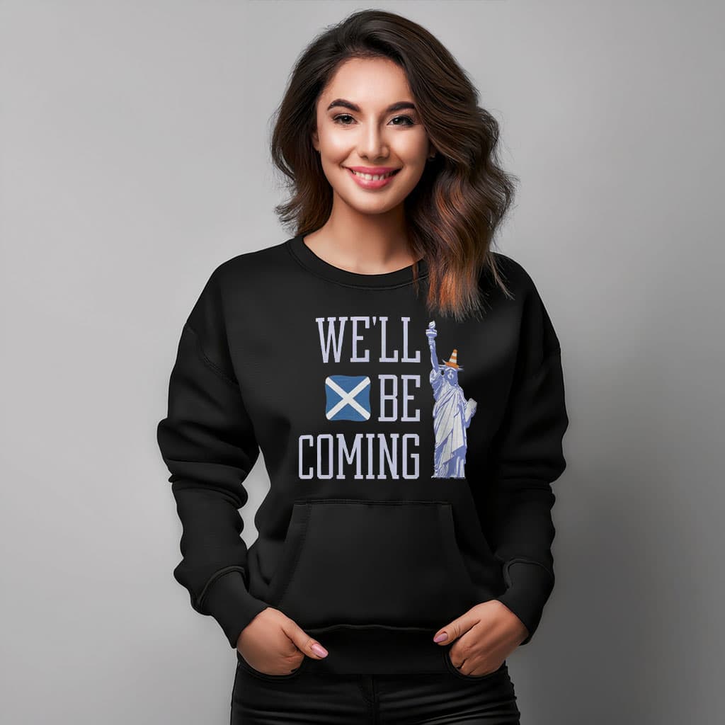 Celebrate Scotland’s passion, pride, and unstoppable spirit with the Tartan Army “We’ll Be Coming” Scotland Football T-Shirt. Designed for true supporters, this tee captures the electric energy of match days, the roar of the fans, and the iconic chant that echoes across every stadium where Scotland plays.