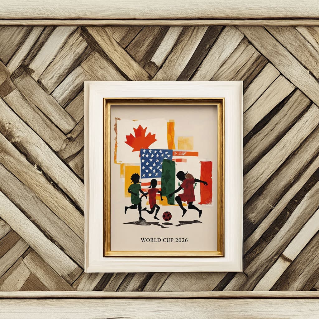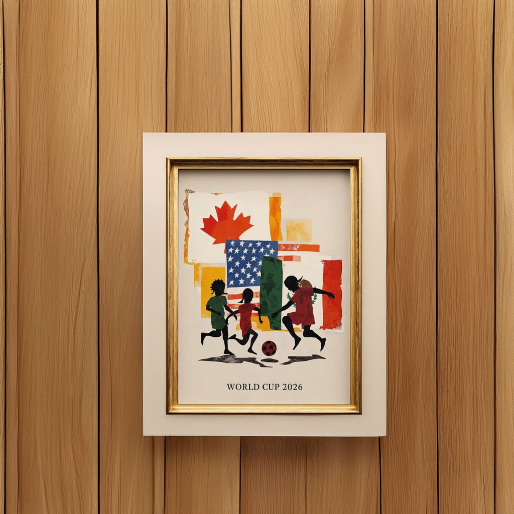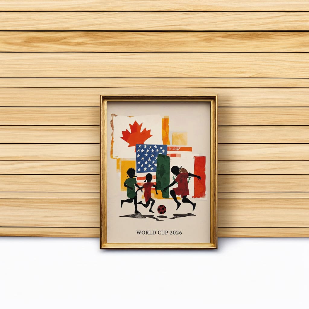 Perfect for home, office, fan rooms, or sports spaces, this poster is a timeless keepsake for soccer fans who want to commemorate World Cup 2026 and the shared hosting of the USA, Canada, and Mexico.