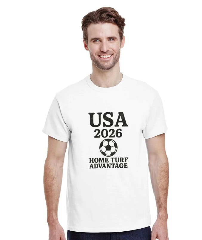 This USA soccer t-shirt combines bold messaging with everyday comfort, making it ideal for match days, watch parties, stadium events, or casual streetwear. The “Home Turf Advantage” slogan reflects the energy of playing on familiar ground—crowds roaring, cities alive with football culture, and national pride on full display throughout the 2026 tournament.