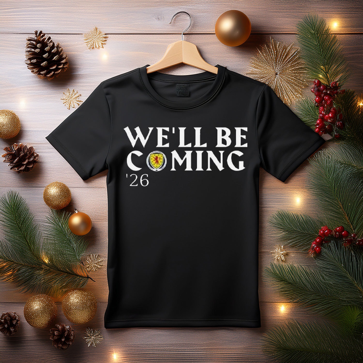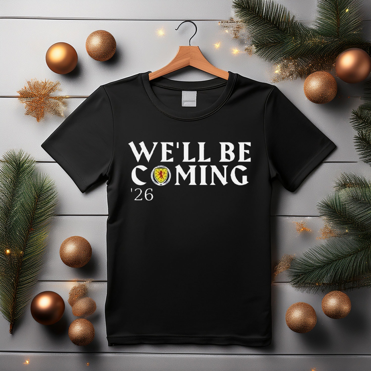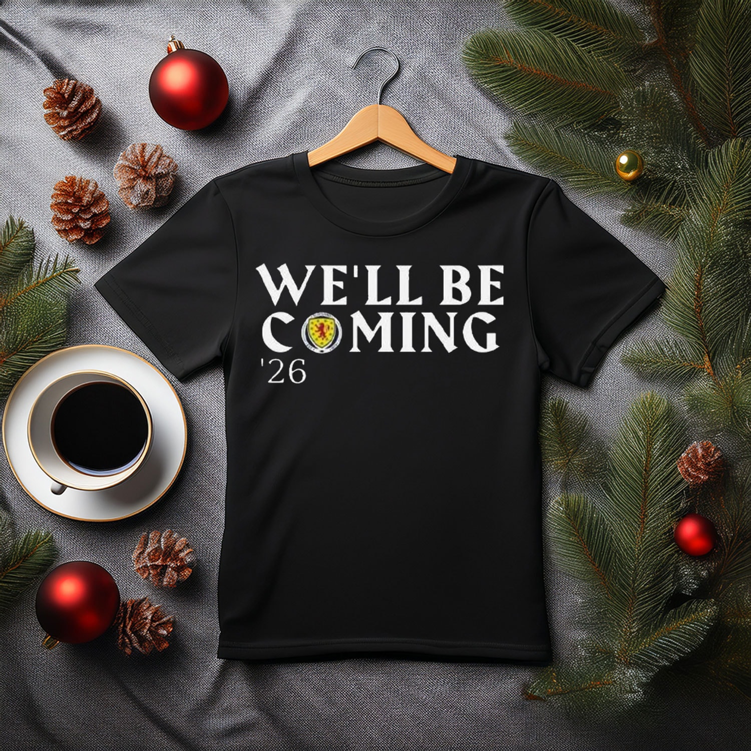 The We’ll Be Coming ’26 Football Fan Shirt celebrates Scotland’s passionate journey toward the 2026 World Cup with the iconic chant every supporter knows by heart. Designed for die-hard football lovers, this tee captures the excitement, unity, and national pride that define Scotland’s fans at home, in the pub, and on the world stage.