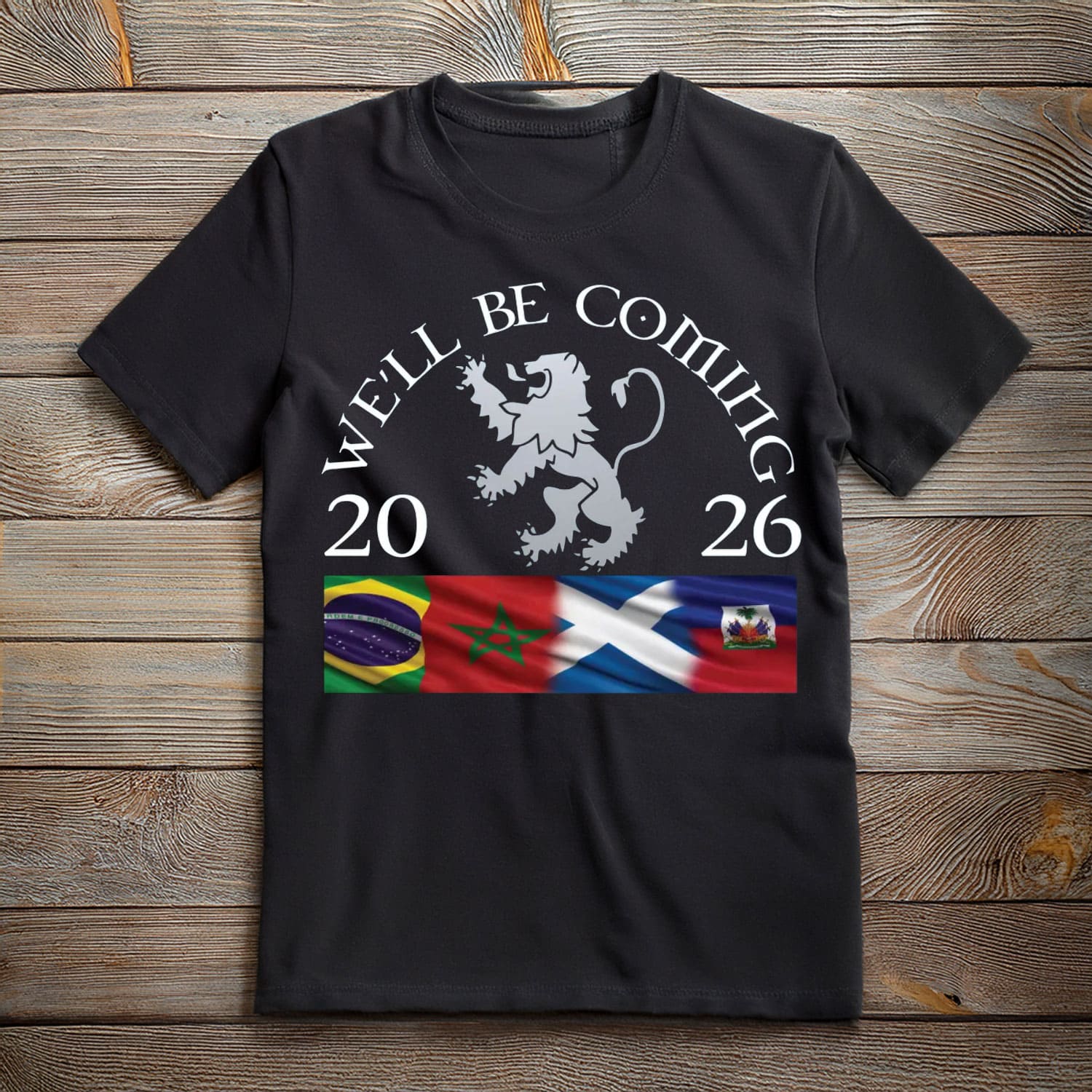 Celebrate Scotland’s campaign and their Group F rivals with the We’ll Be Coming Scotland Brazil Morocco Haiti 2026 T-Shirt. Fun, energetic, and full of supporter spirit—it’s the perfect shirt for the journey to 2026.