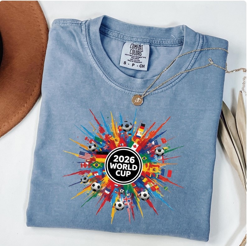 Made from high-quality, heavyweight cotton, the World Cup 2026 Comfort Colors T-Shirt offers durability while maintaining breathability and comfort. The garment-dyed process gives each shirt a unique, slightly vintage look that pairs perfectly with jeans, shorts, or laid-back streetwear. Designed with a classic unisex fit, it’s suitable for both men and women who want a relaxed yet stylish soccer tee.