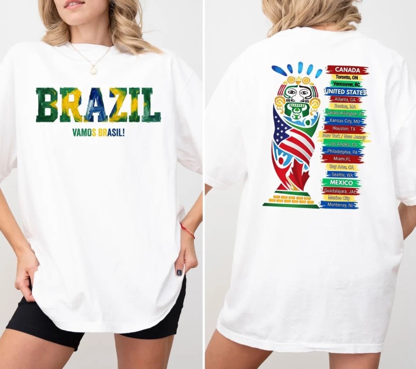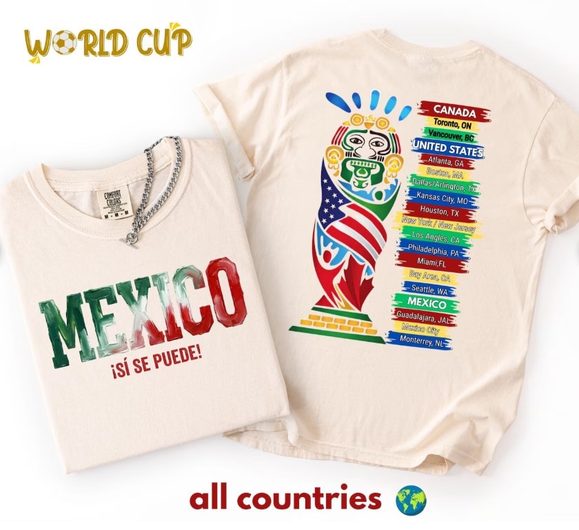 Inspired by the spirit of North American soccer and the energy of the World Cup, this 2026 soccer graphic t-shirt blends bold design with everyday wearability. Whether you’re cheering on match day, attending watch parties, traveling between host cities, or wearing it casually, this tee allows you to proudly represent all three host nations in one iconic piece of fan apparel.